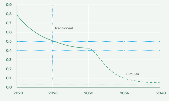 Door optimalisatie van traditionele manieren van bouwen, is een MPG van 0,5 en met uiterste inspanningen van 0,4 haalbaar. Maar dan houdt het op. Om verder te gaan, is een ander proces nodig. Industrialisering opent naar verwachting mogelijkheden voor circulaire strategieën als losmaakbaarheid, aanpasbaarheid en legolisering. Dan kunnen we materiaalkringlopen werkelijk sluiten. Bron: lente-akkoord.nl.